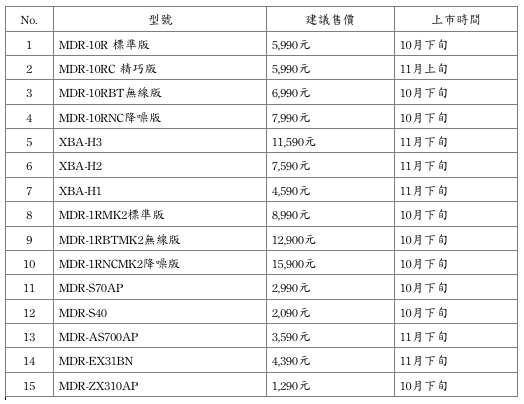除了【MDR-10】、【XBA-H】系列之外, Sony 也將陸續推出包含 MDR-1 後續機種 MDR-1RMK2 等共計 15 款新機種,一次滿足專業、室內、通勤、運動等不同音樂聆聽需求。