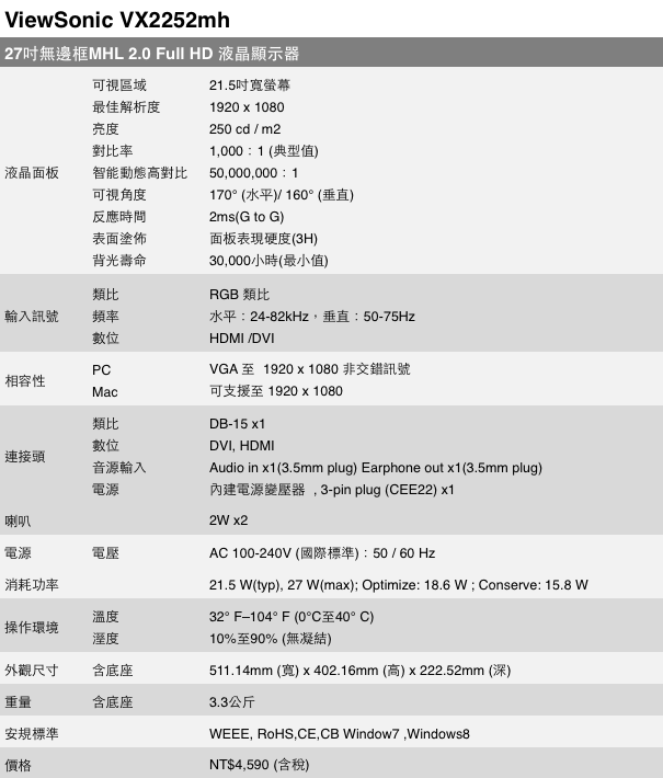 而 16:9 的黃金比例寬螢幕設計,即使在長時間的使用電競遊戲,也不會造成眼睛疲勞,呈現輕鬆舒適的視覺效果,而且寬螢幕比例適合多重視窗並排,為電競玩家帶來更為省時又便利的效能。且整合 D-sub、DVI 及 HDMI 多重輸入,能與高畫質多媒體裝置彈性連結,而內建兩組兩瓦立體聲喇叭更豐富了多媒體娛樂內容的聲光效果。