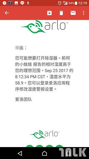 無論是動作、聲音、溫度、濕度有異常時都可以設定推播警示功能,荊柯設定為信件通知,通知內容是簡體中文。