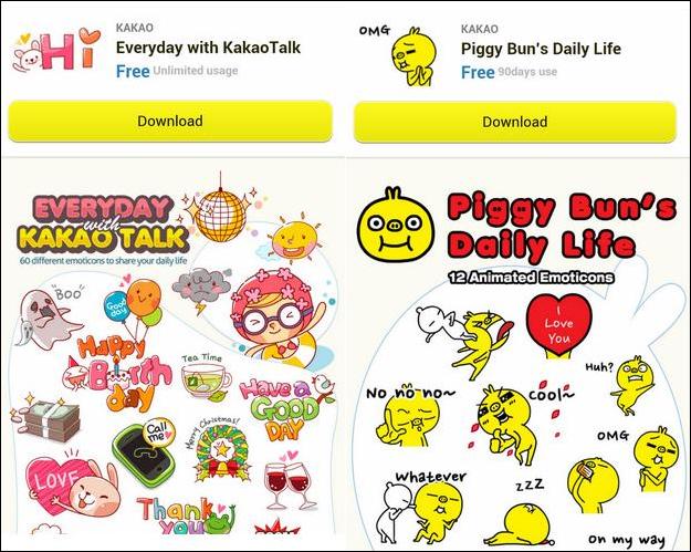 圖 7:進入 KakaoTalk 的物品貼圖就可以看到付費及免費的動態貼圖。